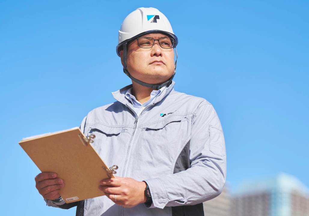 巨大な動く機械のスケールに惹かれ、入社を決めたT.T.。工事現場の責任者として安全と品質の担保、スケジュール管理を担い、お客様のニーズをカタチにしていきます。