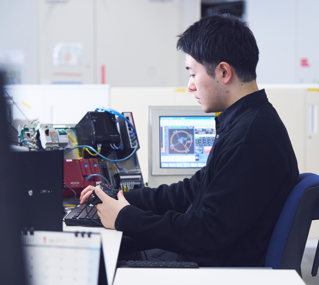 運搬機械の制御システムを担当し、見積・基本・詳細設計を行います。制御工学や電気回路、プログラミングなど大学で学ぶ知識を活かせる仕事です。他部門と連携し、試験や改善にも取り組みながら、安全で確実に動く制御を作り上げます。